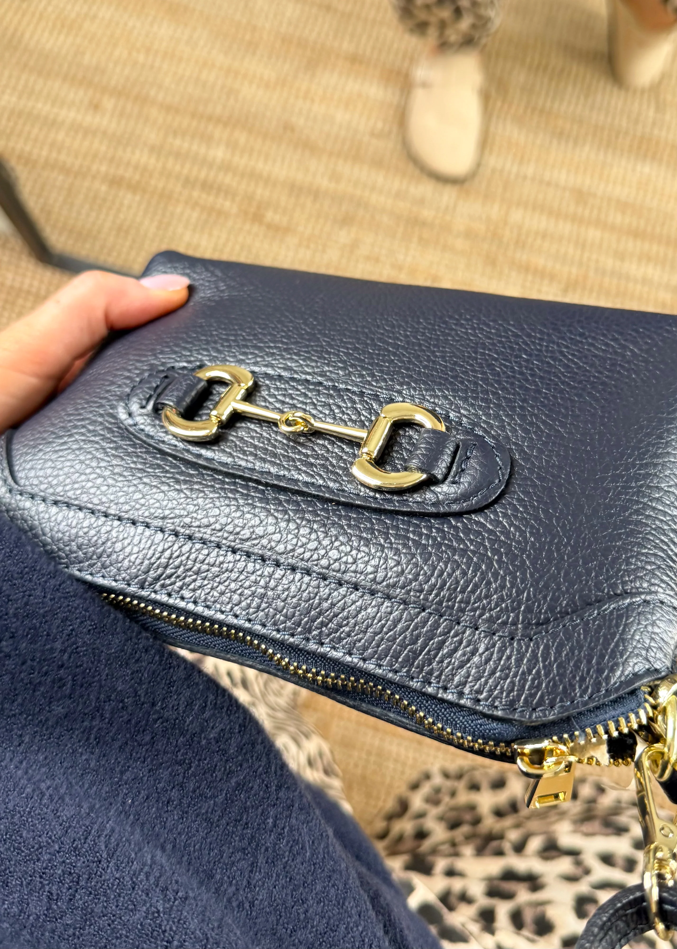 Mini leather horsebit bag - navy