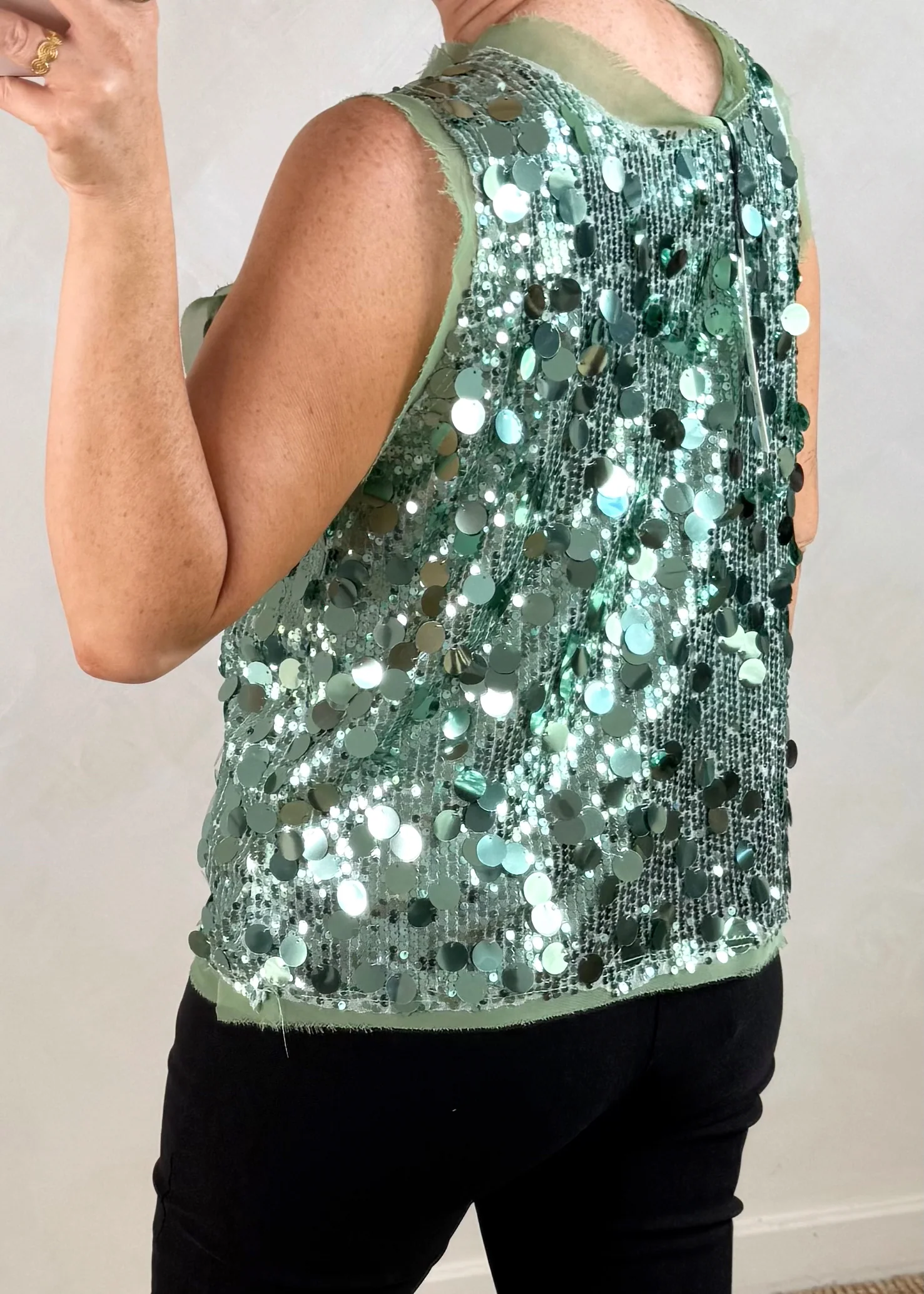 Elevate your wardrobe with this mint sequin vest, crafted in Italy for exceptional quality...