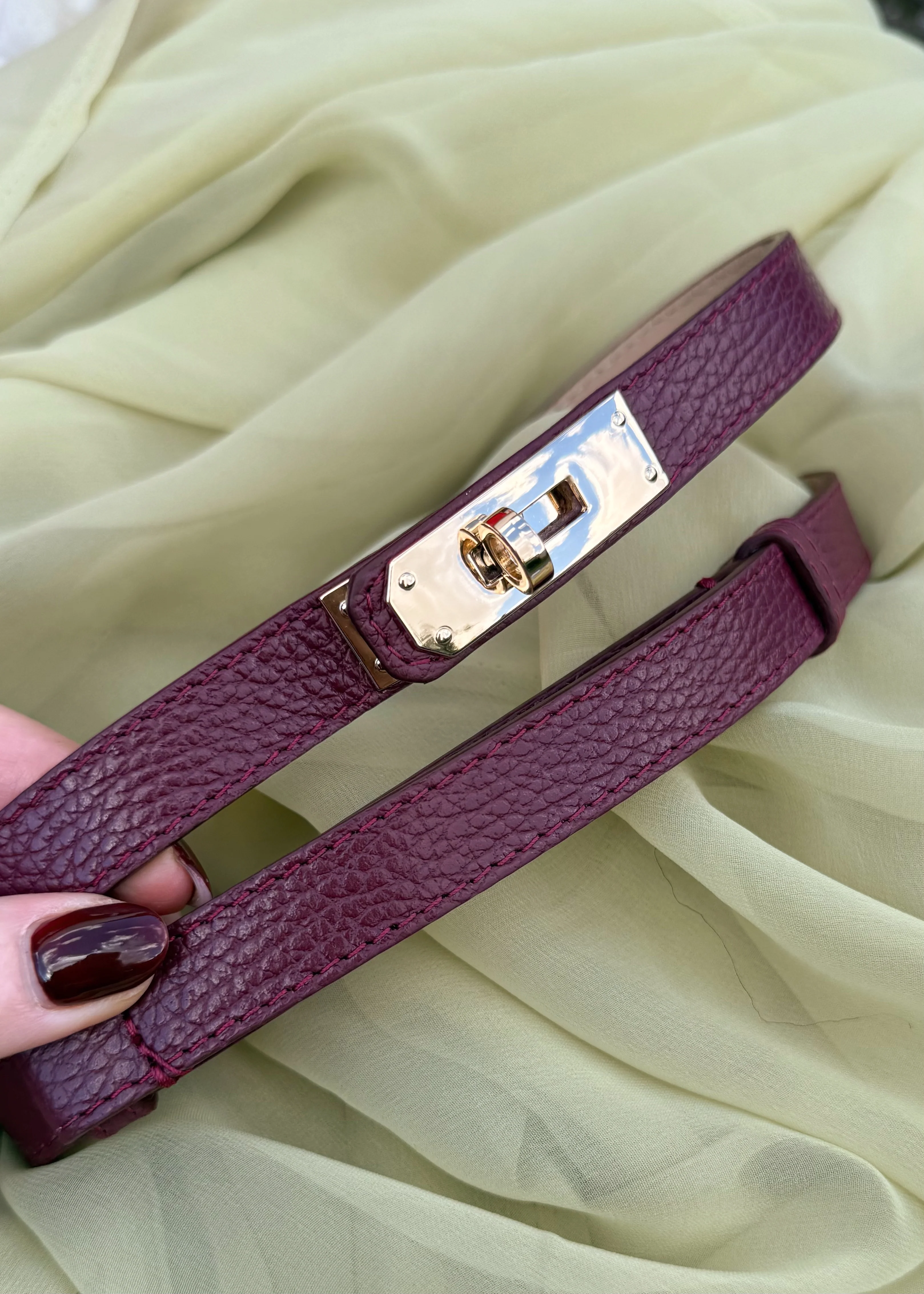 Twist lock leather belt - merlot